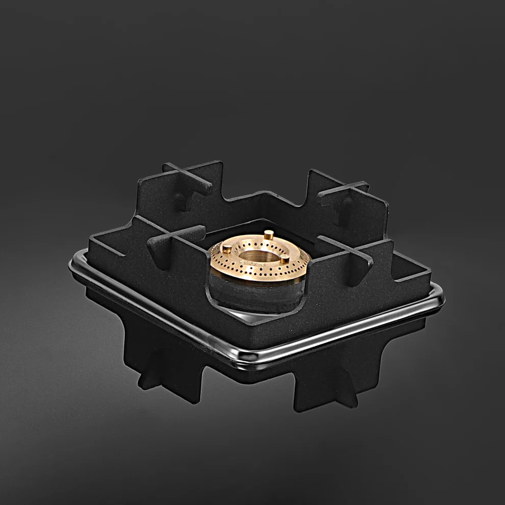 • Square Pan Support – Provides stable and balanced support for all cookware.