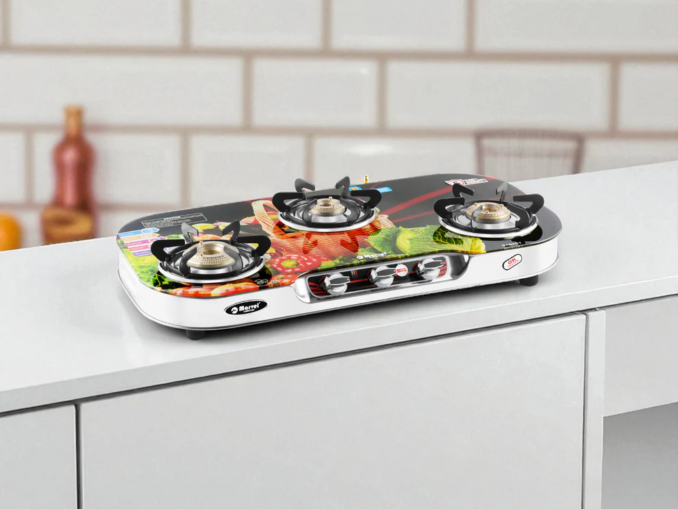 Experience premium design and performance with the Cooktop Marvel 4 Burner Gas Stove, crafted for modern Indian kitchens. Designed with stunning mirror-finish frames and powerful brass burners, it combines style, strength, and safety.
