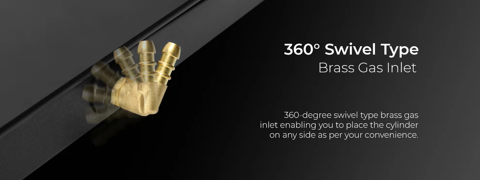 - 3 high-efficiency heavy brass burners for faster cooking